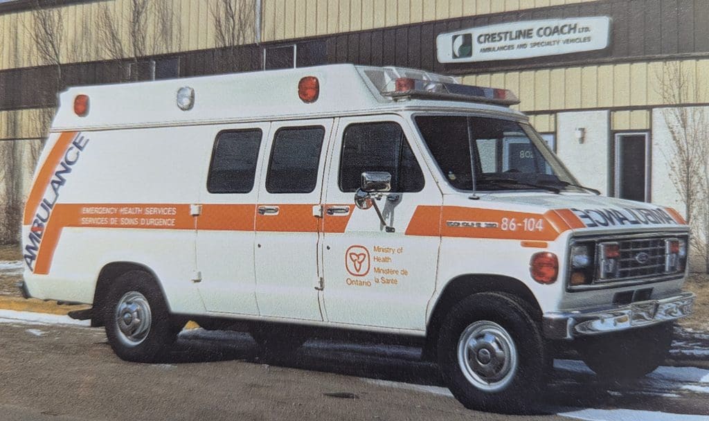 This Ford unit marked an important moment as it was the first Crestline ambulance purchased by the Ontario Ministry of Health. Its provincial identification number on the front fender showed it was the 104th unit acquired by the Ministry that year. More importantly, this purchase marked the beginning of a valued and enduring partnership.